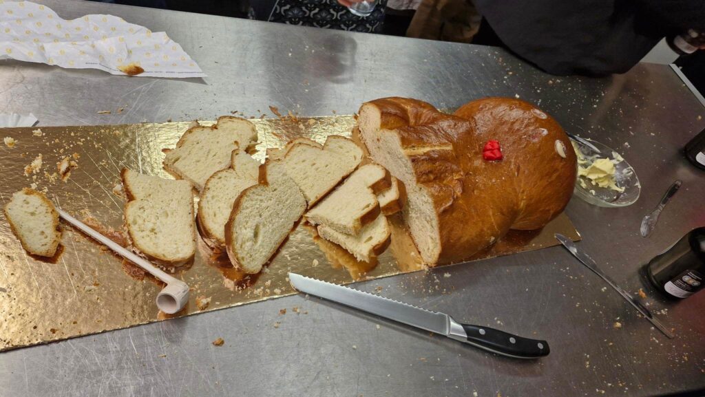 Zum traditionellen Ausklang gab es zwei riesige Weckmänner, die gemeinsam geteilt wurden. Bei Bier und Wein ließen die Mitglieder den Abend in gemütlicher Runde ausklingen.