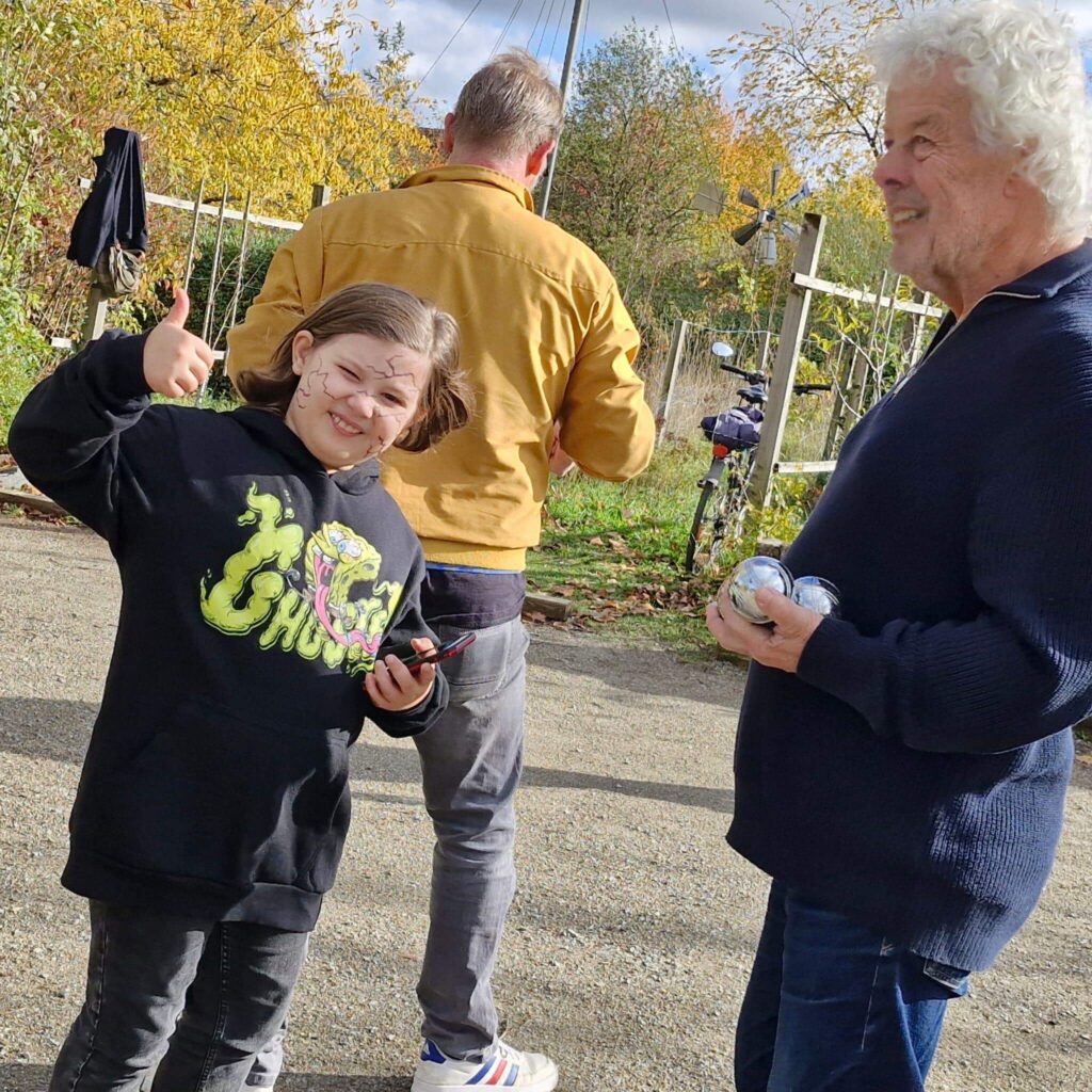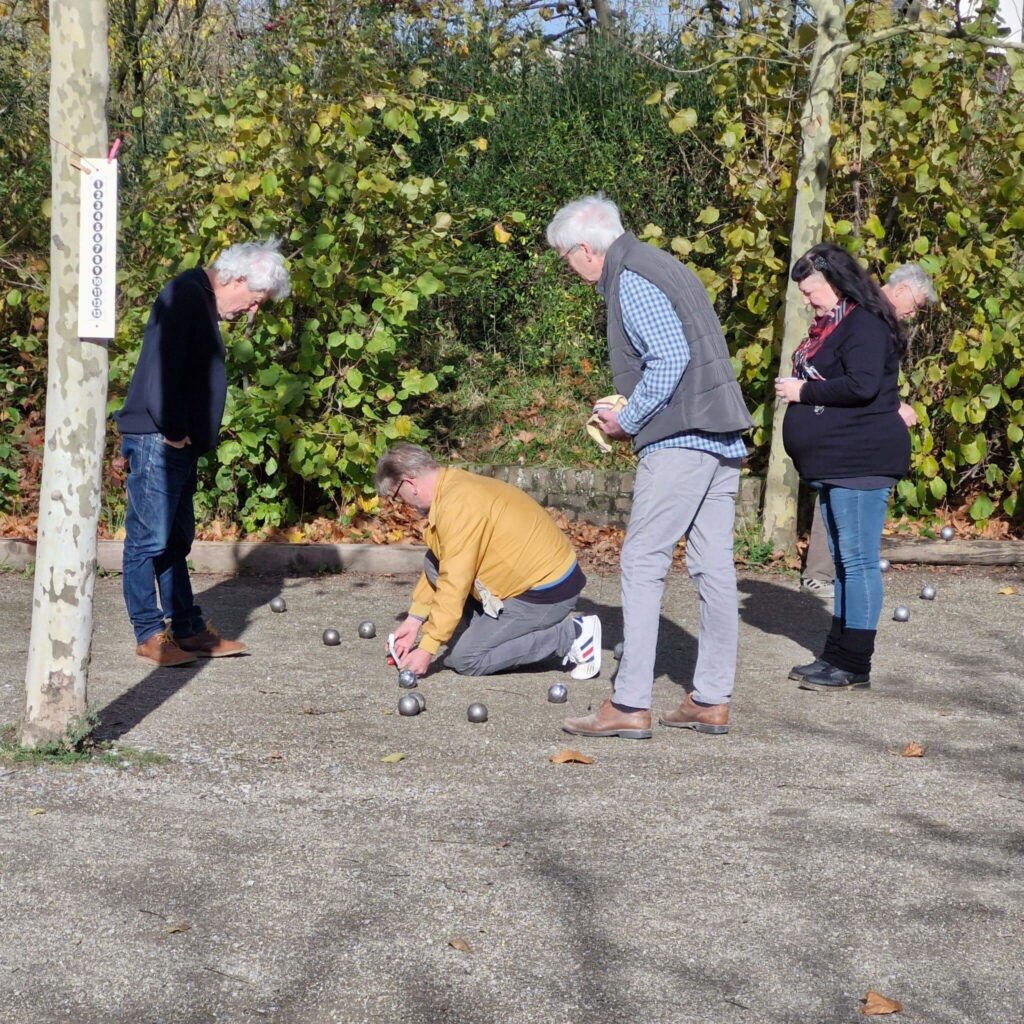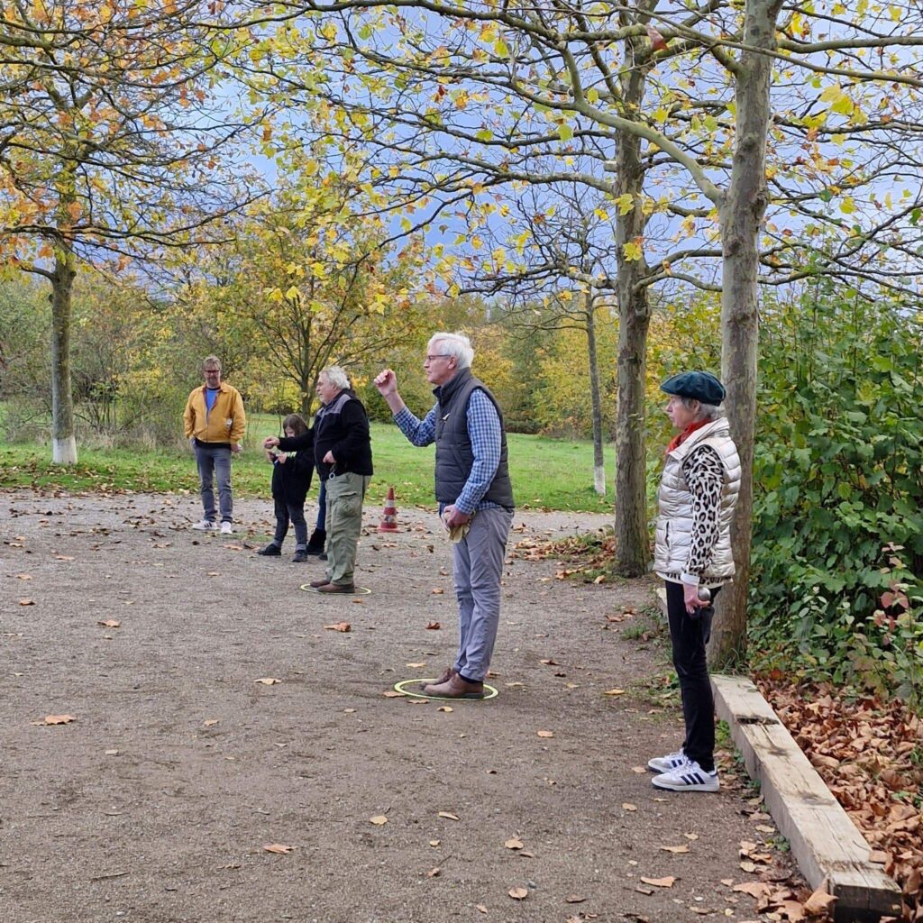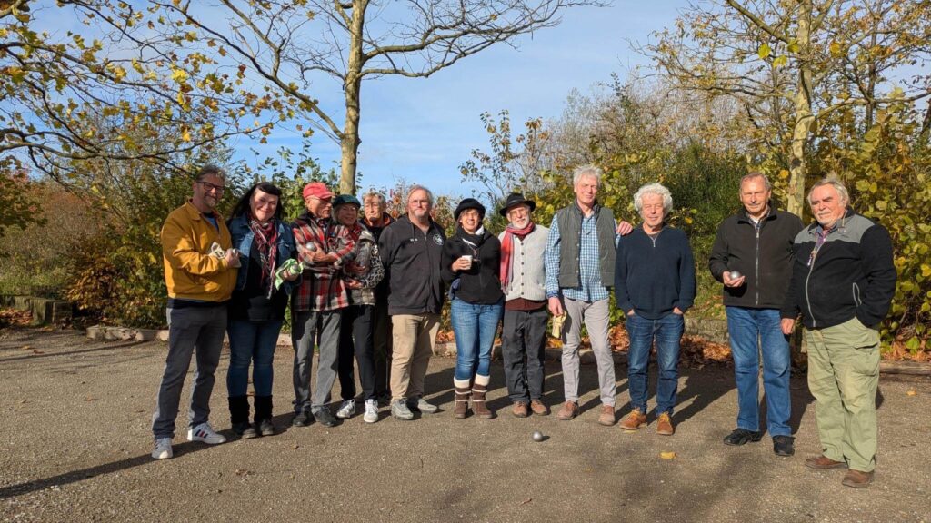 Bei überwiegend sonnigem Wetter – nur gelegentlich unterbrochen von ein paar Regentropfen – traten sechs Doubletten gegeneinander an. Fünf Spielerinnen und Spieler kamen aus dem Mitglieder- und Bewohnerkreis des Ökotops. Auch Elske und Kurt, unser ehemaliger Präsident, waren als Zuschauer mit dabei. Max, der Gärtnerfreund aus Rundling 1, schaute ebenfalls vorbei, und auch einige Spaziergänger zeigten reges Interesse am Spielgeschehen.